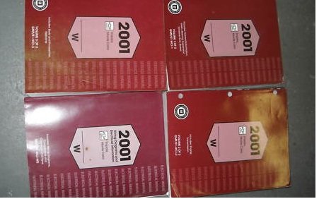 Image: The complete set of 2001 Chevrolet Impala/Monte Carlo service manuals. This image displays four distinct manuals, typically comprising Volume 1, Volume 2, Volume 3, and a separate Wiring Diagrams manual, all essential for comprehensive vehicle service.
