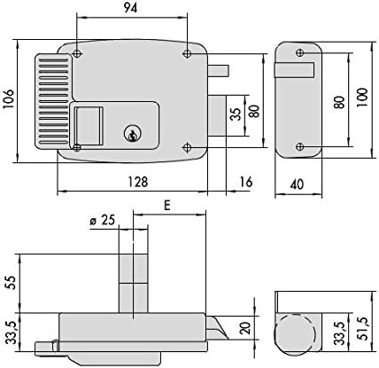 The Cisa 11931.70.3 is an electric rim lock designed for surface mounting on doors. It features a robust metal construction and is suitable for various security applications. Below is a technical drawing illustrating the lock's dimensions and key components.