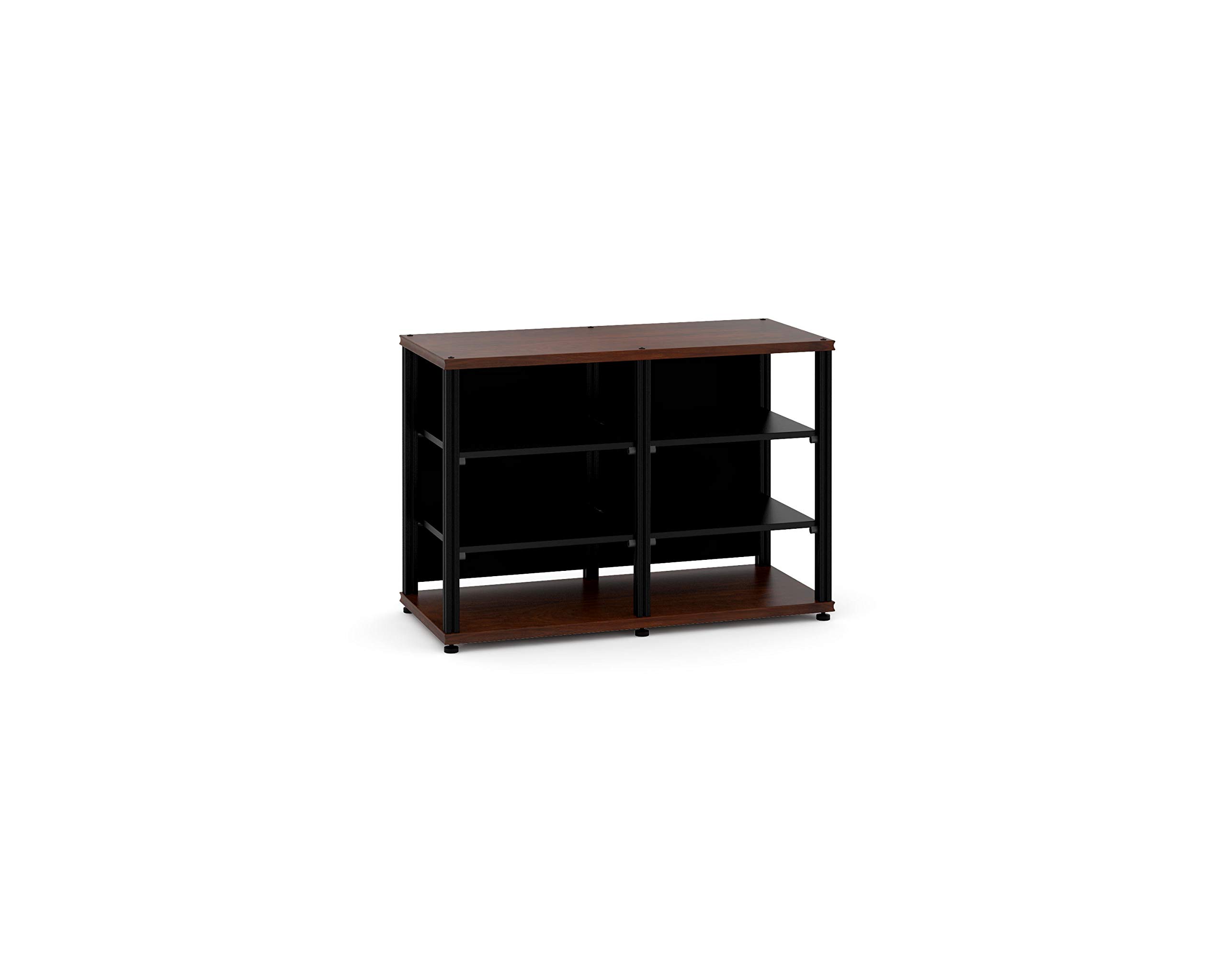 Image: Salamander Synergy Twin 30 Core Module AV Cabinet. This image displays the assembled cabinet, highlighting its walnut finish, black support posts, and the overall structure designed for AV components.