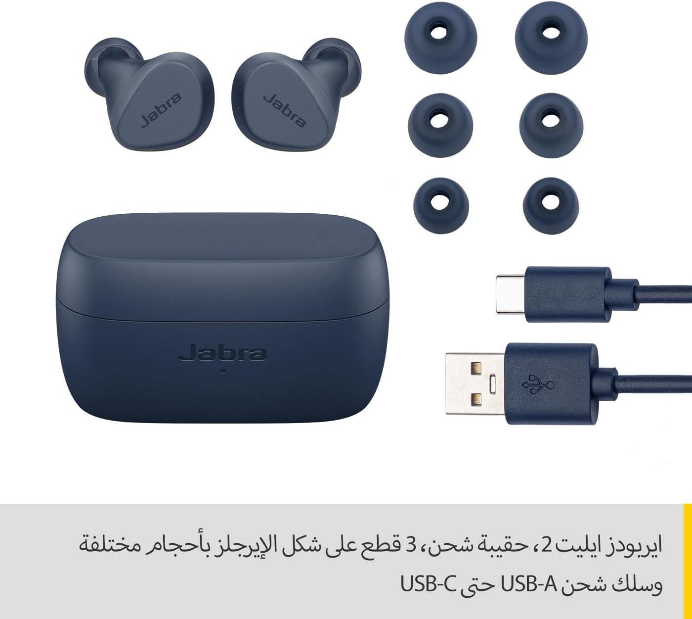 The Jabra Elite 2 earbuds feature intuitive controls for managing audio and calls.