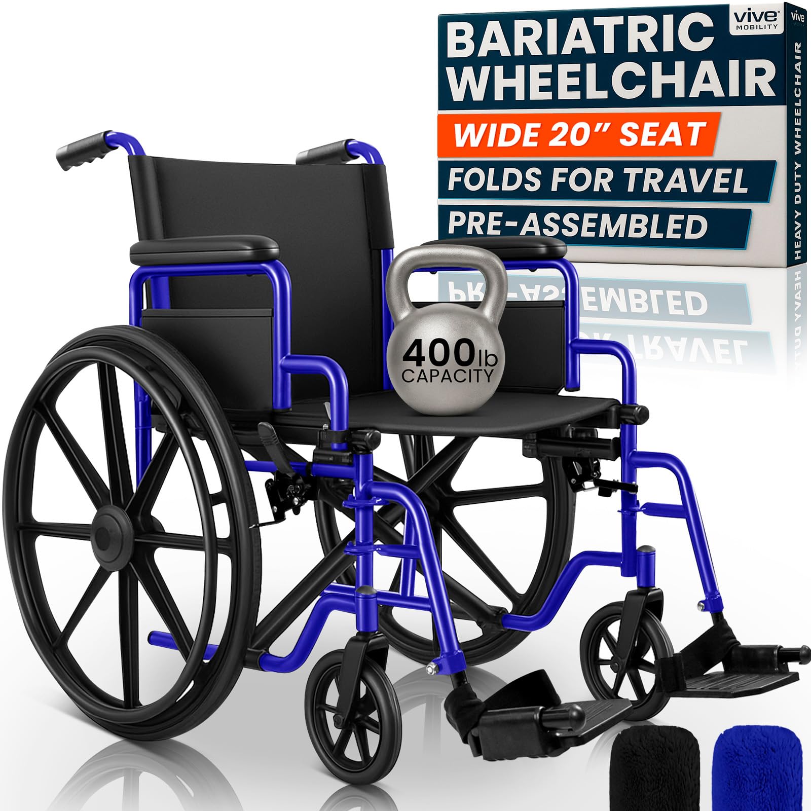 This manual provides essential information for the safe and effective use of your Vive Bariatric Heavy-Duty Wheelchair. Designed for strength, comfort, and convenience, this wheelchair supports individuals up to 400 pounds. It features a durable steel frame, an extra-wide 20-inch seat, padded armrests, and adjustable footrests. Please read this manual thoroughly before initial use and retain it for future reference.