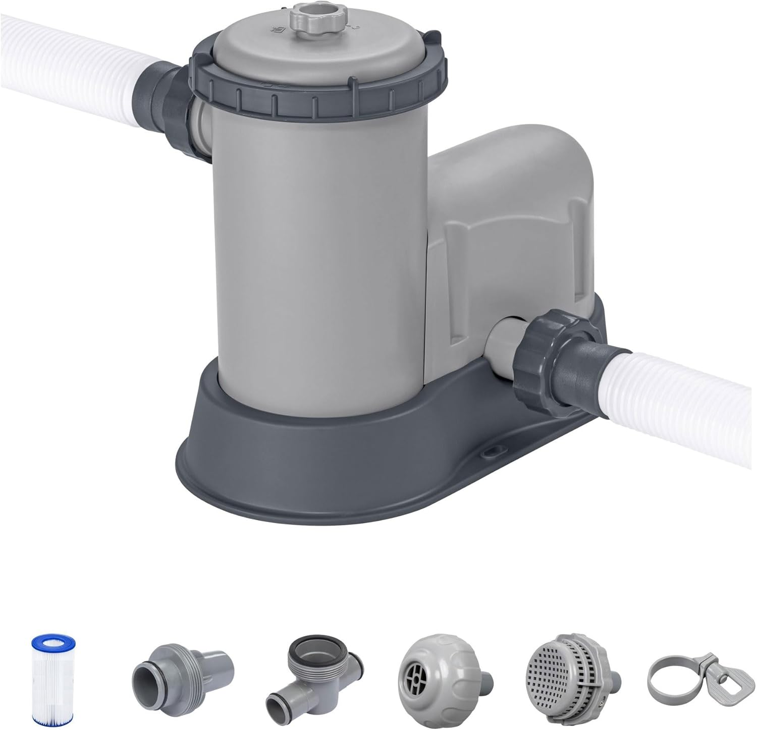 La pompa filtro Bestway Flowclear da 1,500 GPH è progettata per mantenere l'acqua della piscina fuori terra pulita e trasparente, filtrandola e facendola circolare. È dotata di un timer di spegnimento automatico per un funzionamento pratico ed è compatibile con diverse marche di piscine fuori terra.