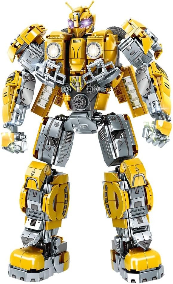 Image 1.1: The fully assembled RiceBlock RB0085 Robot Building Toy Set, showcasing its detailed design and yellow and grey color scheme.