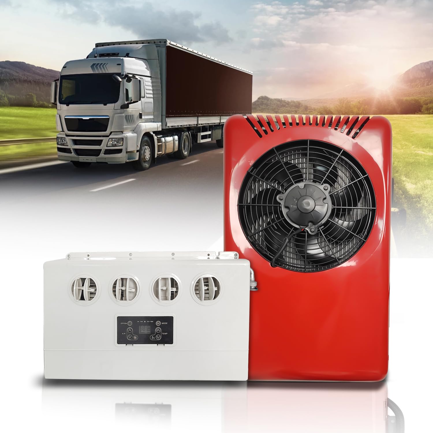 The Treeligo 12V Mini Split Air Conditioner is designed to provide efficient cooling for various vehicle types, including semi-trucks, RVs, vans, pickups, cars, trailers, and buses. This unit operates on a 12-volt DC power supply, offering a cooling capacity of 8500 BTU with low noise operation. It features a variable frequency compressor for energy efficiency and multiple operating modes to suit different needs.