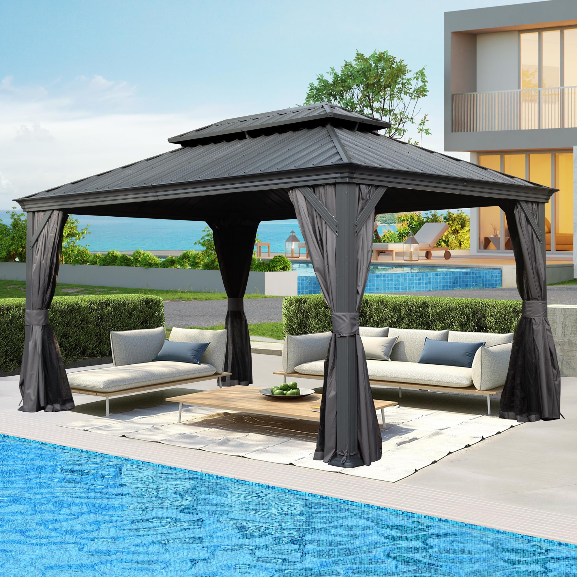 The Domi 12’ x 16’ Outdoor Hardtop Gazebo is designed for comfort and durability, offering a blend of classic and modern aesthetics for your outdoor space.