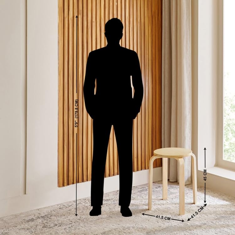 The Home Centre Paulo Solid Wood Stool is designed for versatility and durability, offering a comfortable and sturdy seating option. It features a round seat and is crafted with a surface veneer of birch and an inner veneer of poplar, providing both strength and a refined aesthetic. The natural wood grain is enhanced by a clear lacquer finish, giving the stool a sleek and polished appearance.