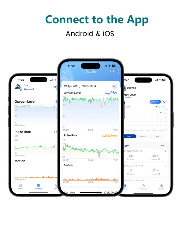 The OxyU can provide notifications if your blood oxygen level falls below a preset threshold. This threshold is customizable between 80% and 95% within the ViHealth app. Both the device and your connected phone will provide a reminder.