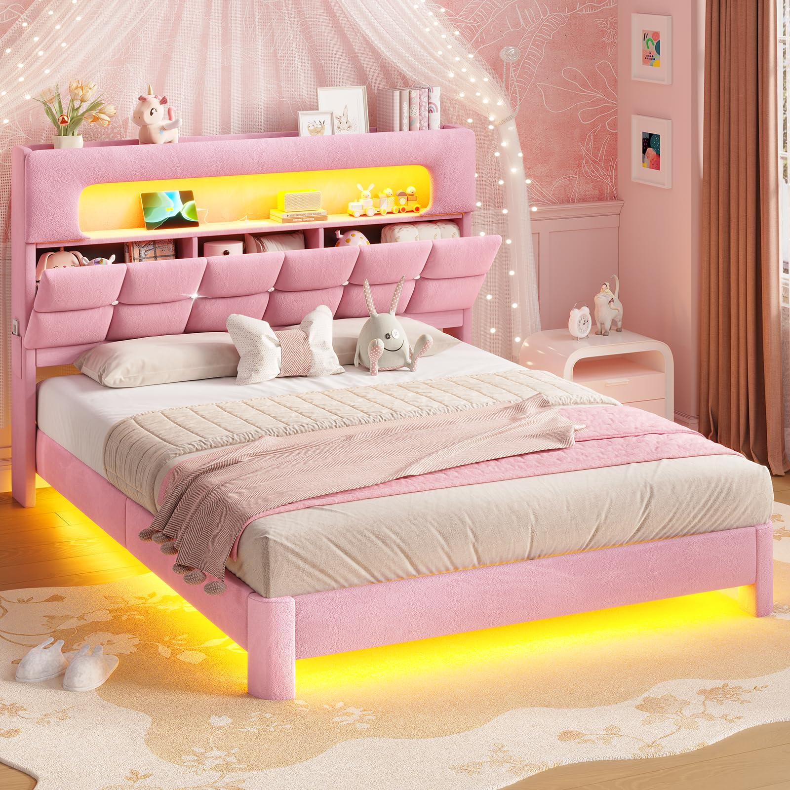 - Headboard components (upholstered panels, LED light strip, charging station)